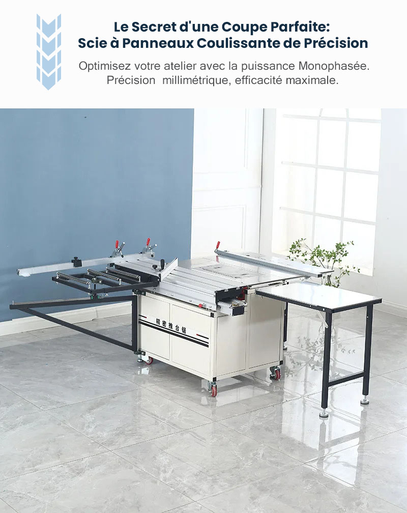 | Nom du Produit | Scie à Panneaux Monophasée à Double Lame de Précision |